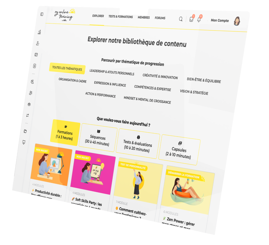 Créez votre compte pour accéder au catalogue complet de formations Soft Skills, découvrir les offres adaptées à votre organisation et explorer les parcours disponibles.